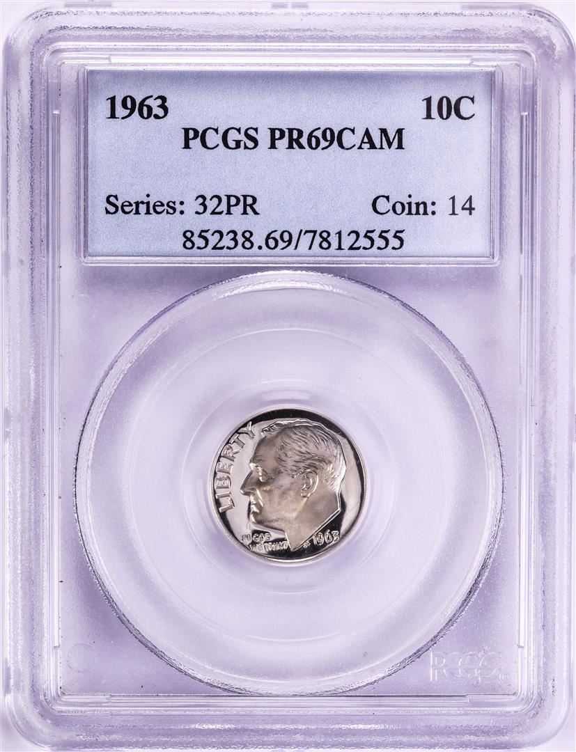 One 1963 Proof Roosevelt Dime Coin PCGS PR69CAM. PCGS Graded.