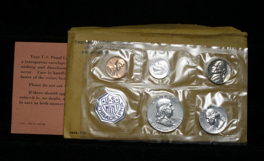 This is The Final Year of The Franklin Half Dollar, its run cut short by the Death of President Kennedy and the Nations swift move to put him on a coin. The set, has a 90% Proof Silver Franklin Half Dollar, a 90% Proof Silver Quarter, a 90% Silver Dime, 2 Other Proof Coins, all in the Original Packaging including The Mint "Memo". Estimated Value $40