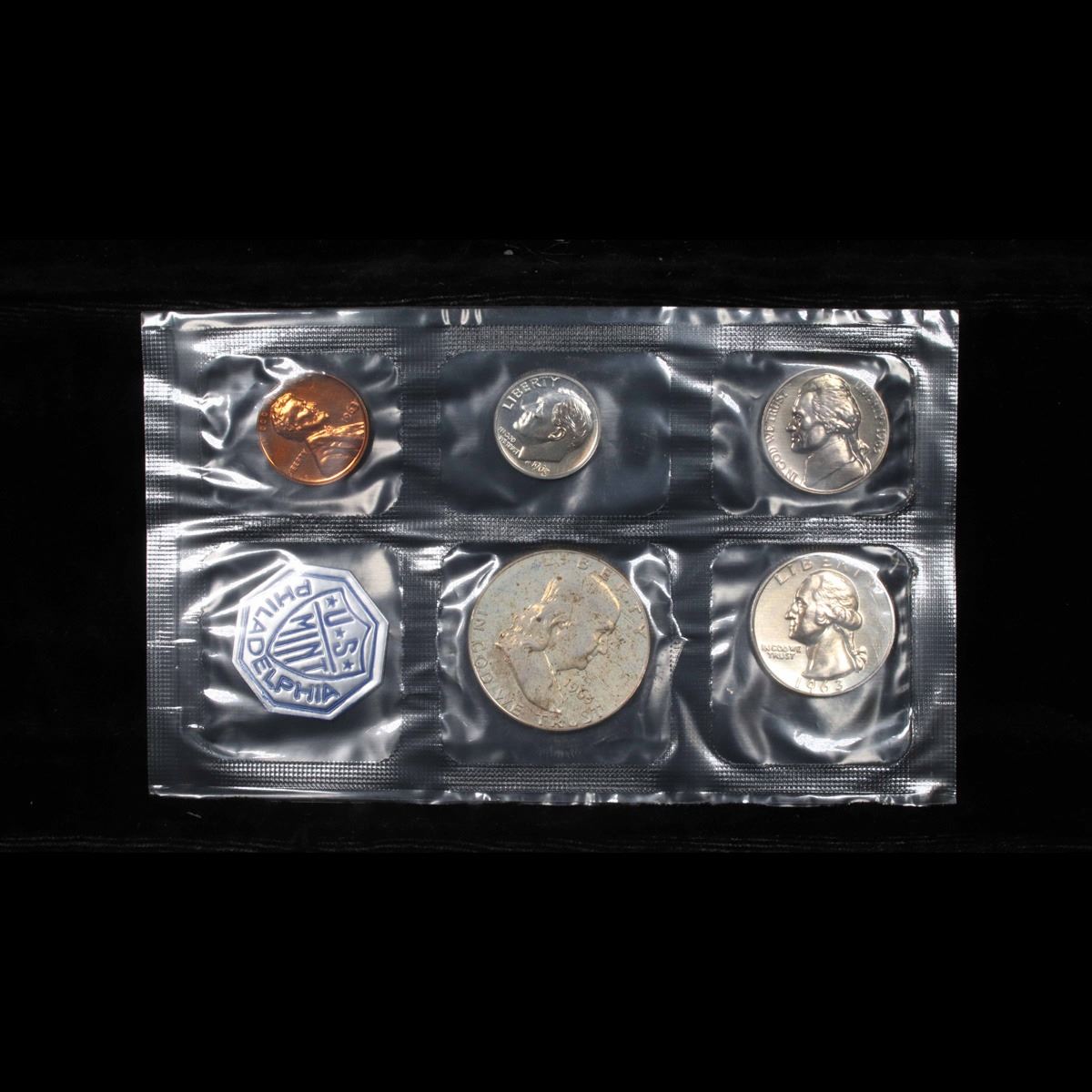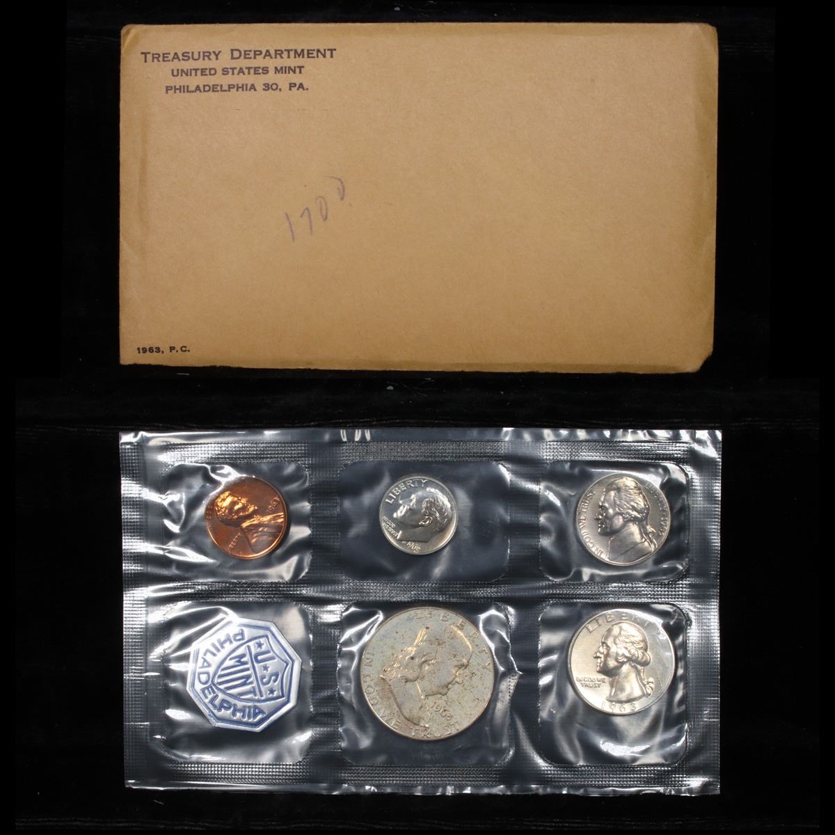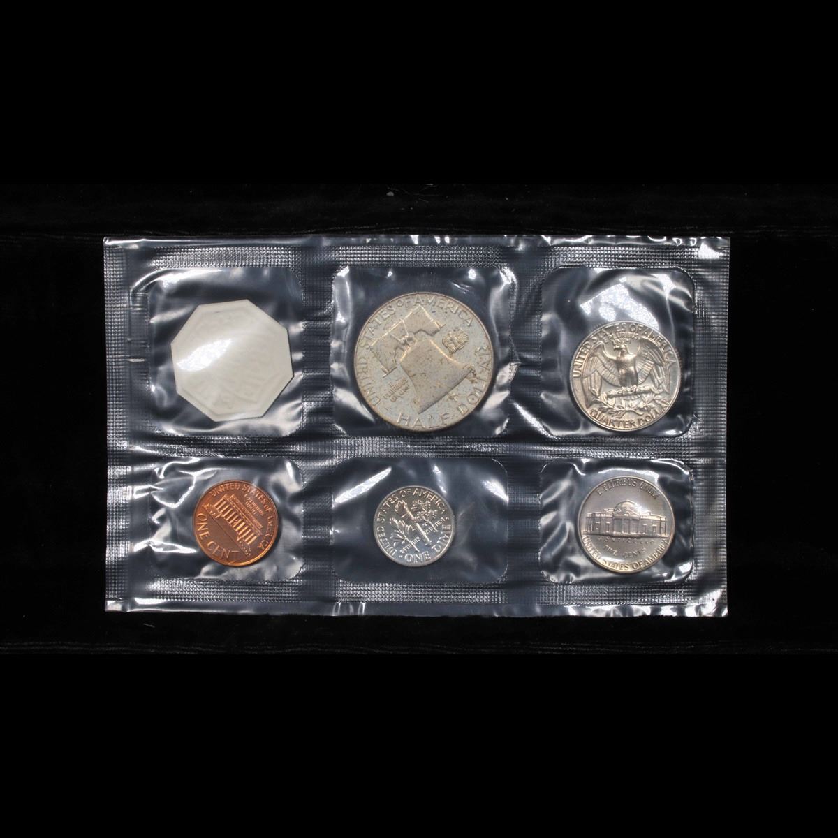 1963 Proof Set in Original mint packaging w/mint memo. This set, has a 90% Proof Silver Franklin Half Dollar, a 90% Proof Silver Quarter, a 90% Proof Silver Dime, plus the proof nickel and proof penny.
