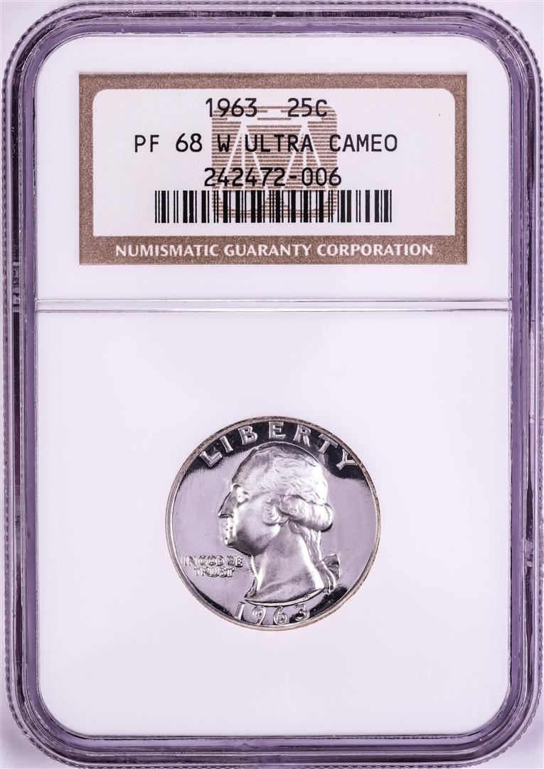 One 1963 Proof Washington Quarter Coin NGC PF68 Ultra Cameo. NGC Certified.