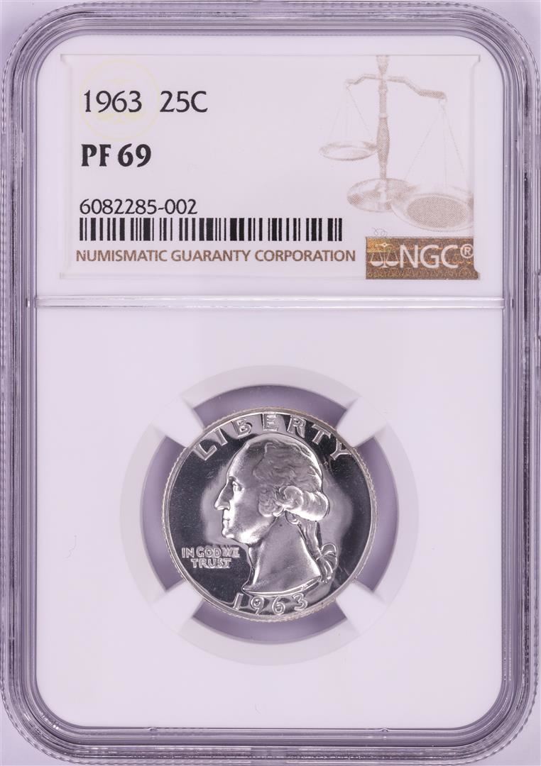 One 1963 Proof Washington Quarter Coin NGC PF69. NGC Certified.