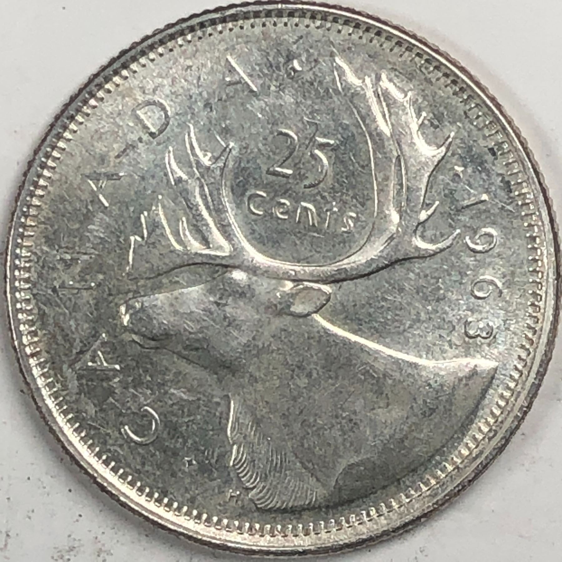 1963 Queen Elizabeth 25 Cents Choice BU