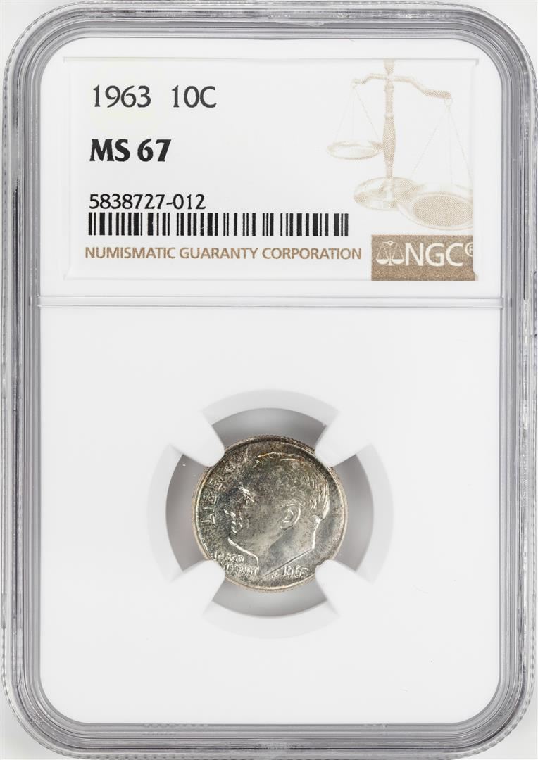 One 1963 Roosevelt Dime Coin NGC MS67. NGC Certified.