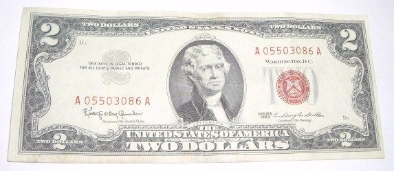 1963 SERIES $2 RED SEAL CERTIFICATE SERIAL # A05503086A *RARE CRISP AU HIGH GRADE*! ***Coin, Currency & All Items Listed in this auction - Grades, Conditions and Values are not Safe Deposit Coins LLC Responsibilty. Grades, Condition and Values are determined by Consigner(s) & Buyers ONLY