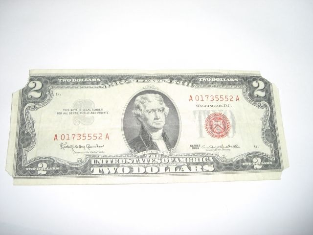 1963 SERIES $2 RED SEAL NOTE *SERIAL #A01735552A*!! ***Coin, Currency & All Items Listed in this auction - Grades, Conditions and Values are not Safe Deposit Coins LLC Responsibilty. Grades, Condition and Values are determined by Consigner(s) & Buyers ONLY***