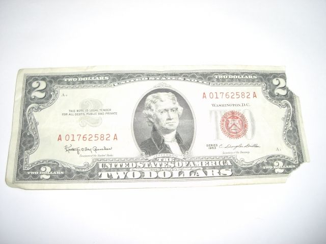 1963 SERIES $2 RED SEAL NOTE *SERIAL #A01762582A*!! ***Coin, Currency & All Items Listed in this auction - Grades, Conditions and Values are not Safe Deposit Coins LLC Responsibilty. Grades, Condition and Values are determined by Consigner(s) & Buyers ONLY***