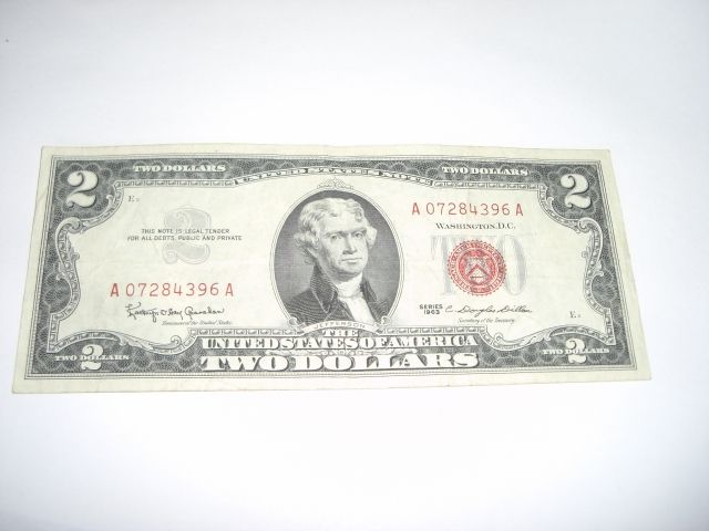 1963 SERIES $2 RED SEAL NOTE *SERIAL #A07284396A*!! ***Coin, Currency & All Items Listed in this auction - Grades, Conditions and Values are not Safe Deposit Coins LLC Responsibilty. Grades, Condition and Values are determined by Consigner(s) & Buyers ONLY***