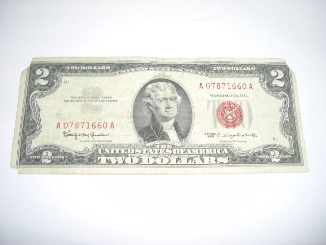1963 SERIES $2 RED SEAL NOTE *SERIAL #A07871660A*!! ***Coin, Currency & All Items Listed in this auction - Grades, Conditions and Values are not Safe Deposit Coins LLC Responsibilty. Grades, Condition and Values are determined by Consigner(s) & Buyers ONLY***