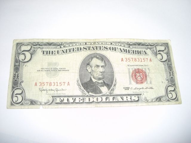 1963 SERIES $5 RED SEAL NOTE *SERIAL # A35783157A*!! ***Coin, Currency & All Items Listed in this auction - Grades, Conditions and Values are not Safe Deposit Coins LLC Responsibilty. Grades, Condition and Values are determined by Consigner(s) & Buyers ONLY***