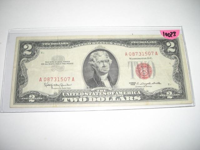 1963 SERIES RARE *RED SEAL-HIGH GRADE* $2.00 SERIAL # A08731507A. DOLLAR CAME OUT OF SAFE!! ***Coin, Currency & All Items Listed in this auction - Grades, Conditions and Values are not Safe Deposit Coins LLC Responsibilty. Grades, Condition and Values are determined by Consigner(s)