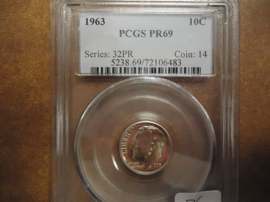 1963 SILVER ROOSEVELT DIME PCGS PR69
