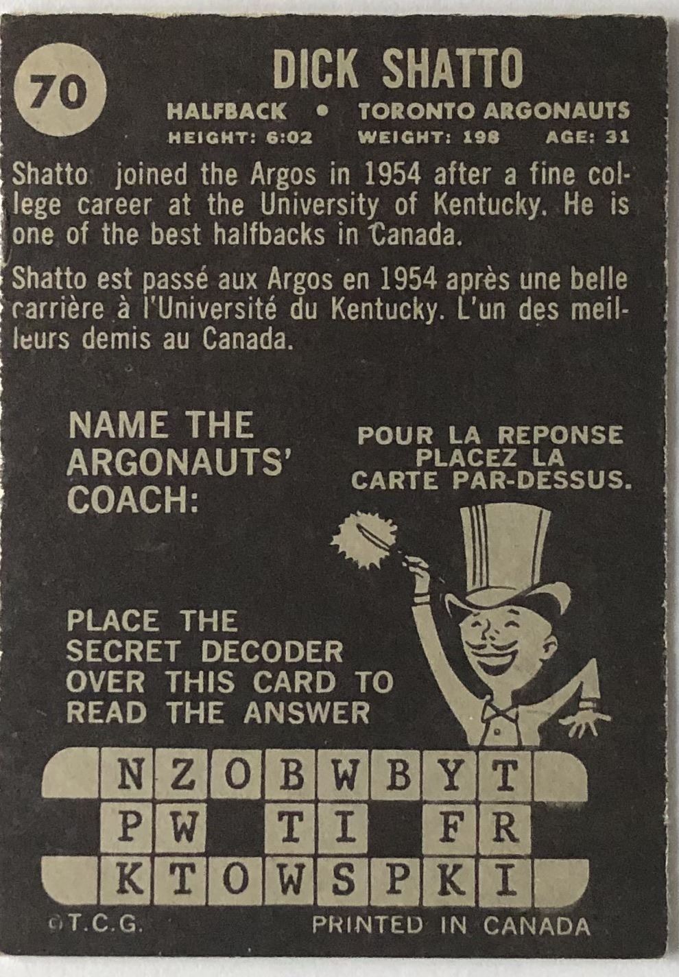 Card #70 CFL, football, vintage, hall of fame