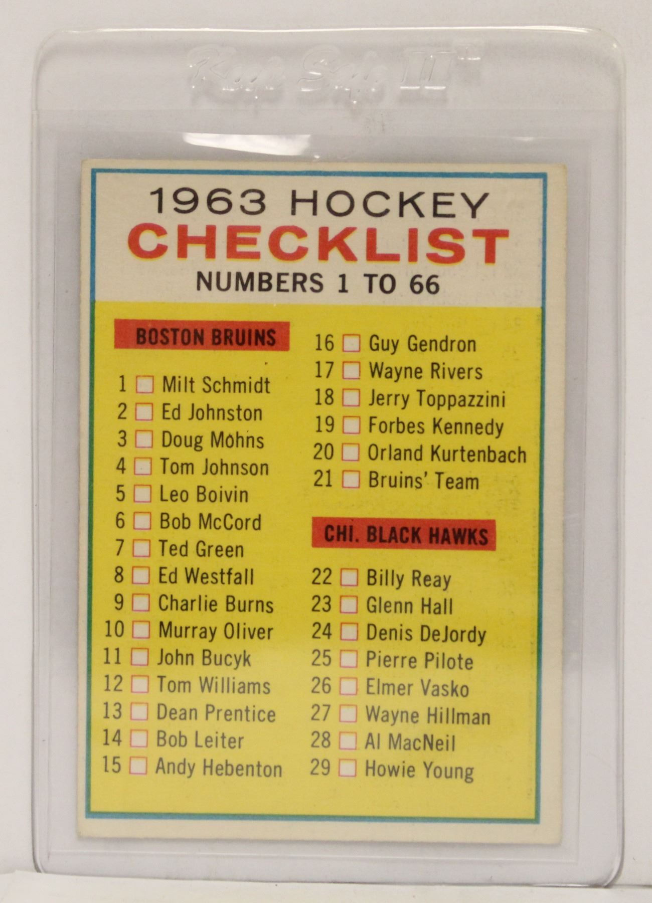 1963 TOPPS HOCKEY CHECKLIST UNMARKED