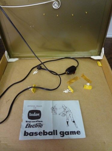 Not complete, missing score cards, includes balls, back board, few players, instructions, Nice condition in original box Est $100-$125