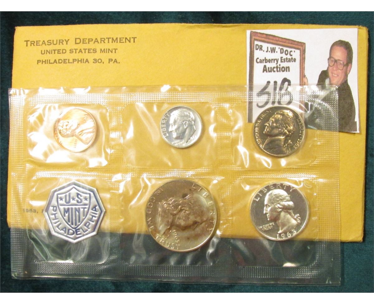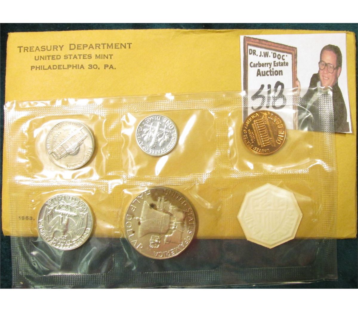 1963 U.S. Proof Set In original envelope and cellophane. The Half-Dollar is well toned.