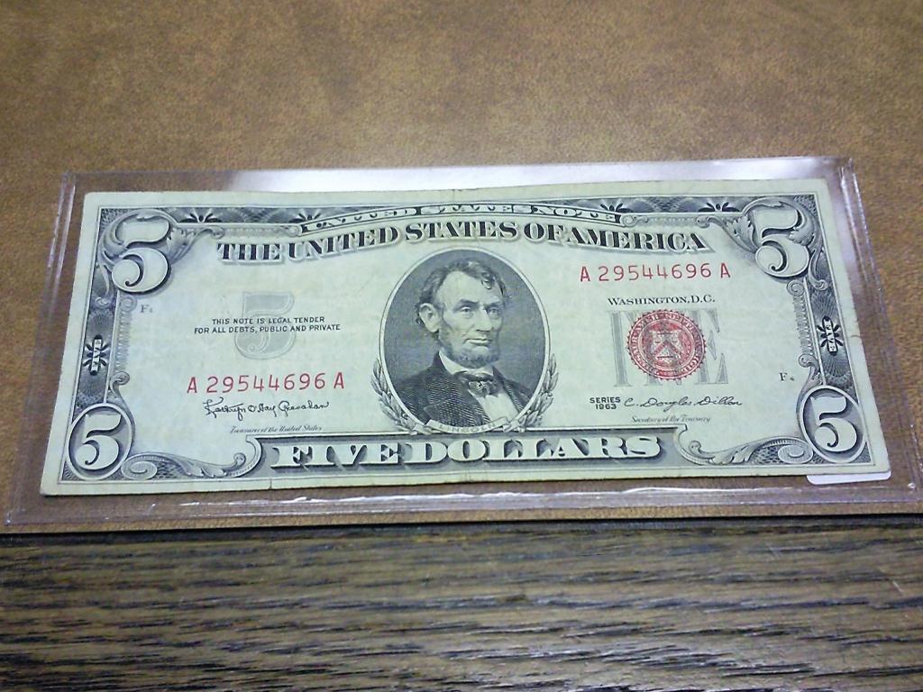 1963 US $5 LEGAL TENDER NOTE RED SEAL