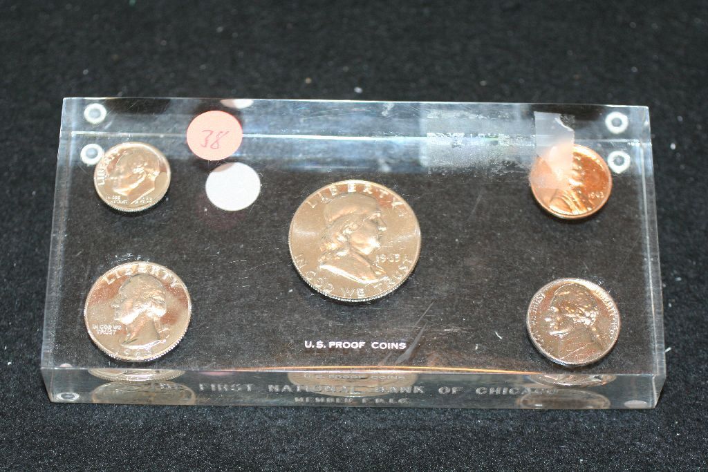 1963 US Mint Proof Set; The First Nat'l Bank of Chicago Paperweight