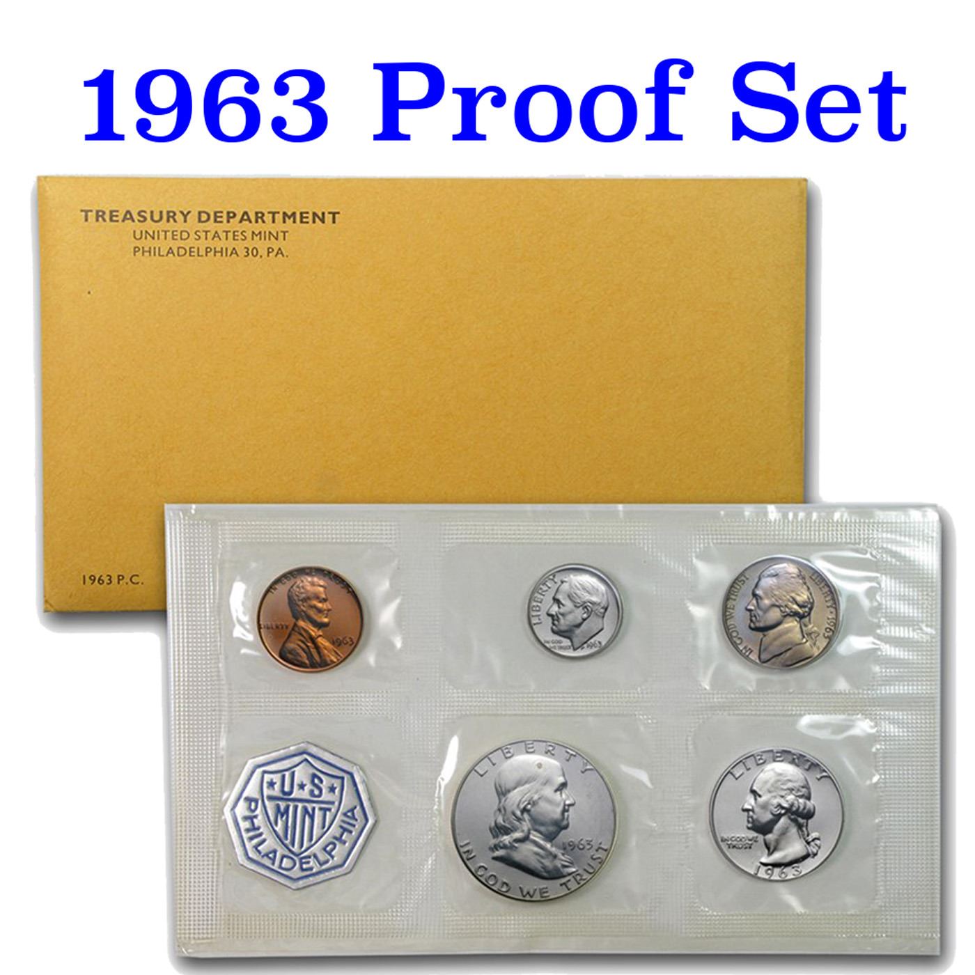 1963 United States Mint Proof Set In Original Envelope! 5 Coins Inside!
