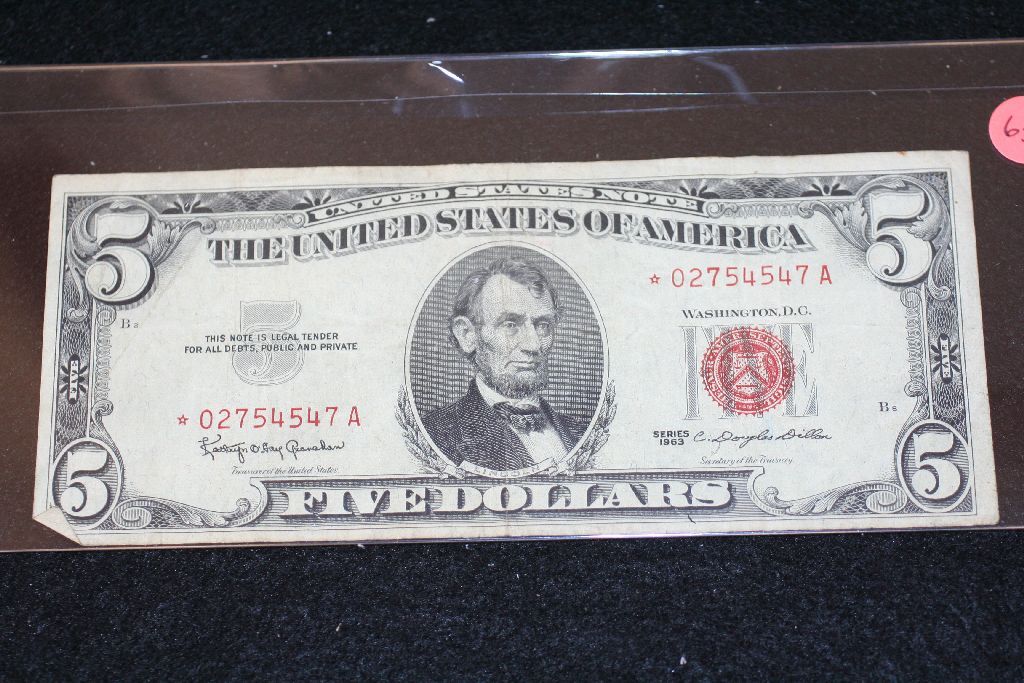 1963 United States Note $5, Red Seal, Star Note