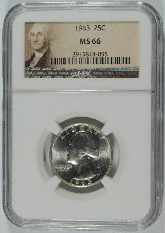 1963 WASHINGTON QUARTER, NGC MS-66 NICE WHITE COIN!