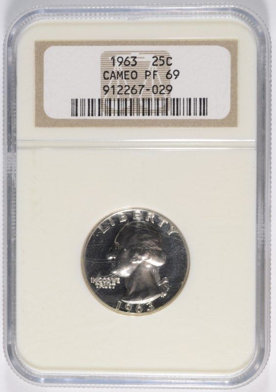 1963 WASHINGTON QUARTER, NGC PROOF-69 CAMEO!