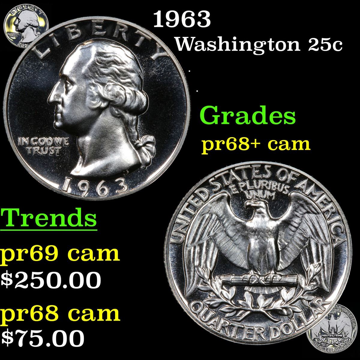 1963 Washington Quarter 25c Grades GEM++ Proof Cameo.