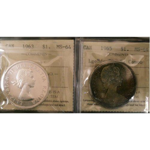 1963 and 1965 Lg.Bds Blt.5 $1 both ICCS graded MS-64 CAMEO