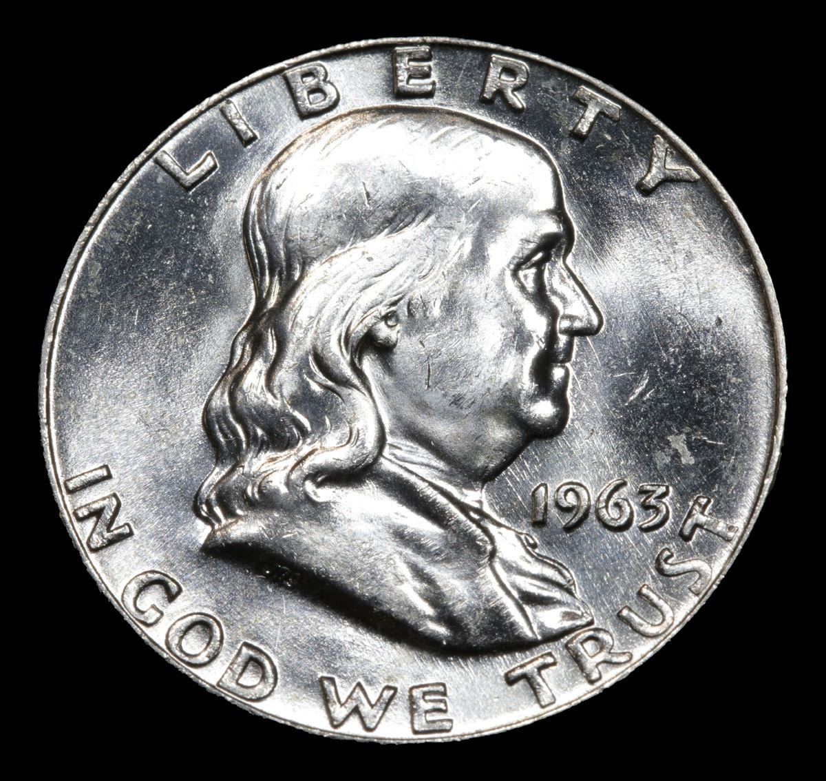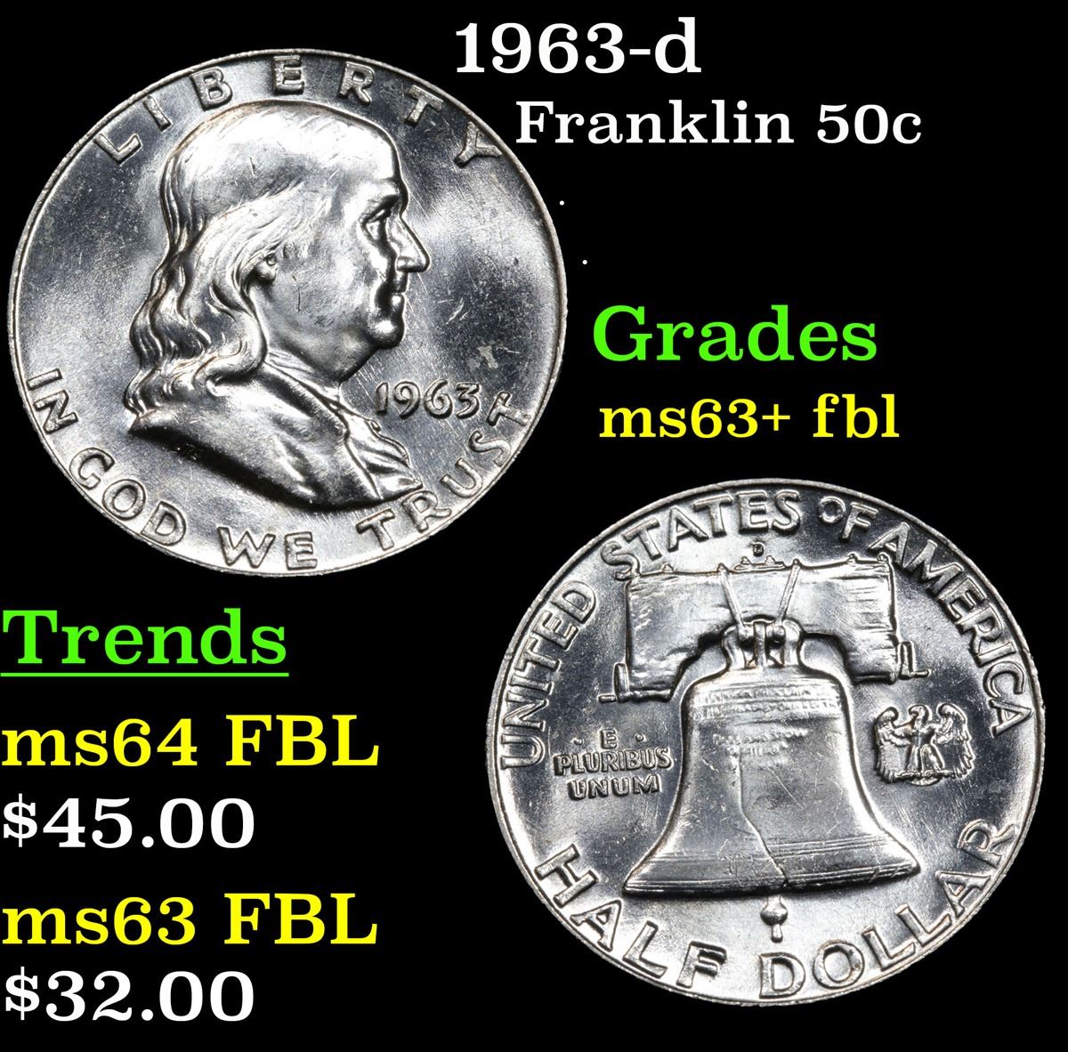 1963-d . . Franklin Half Dollar 50c Grades Select Unc+ FBL.