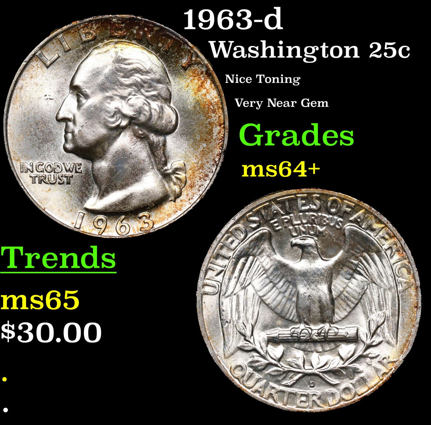 1963-d Washington Quarter 25c Grades Choice+ Unc.