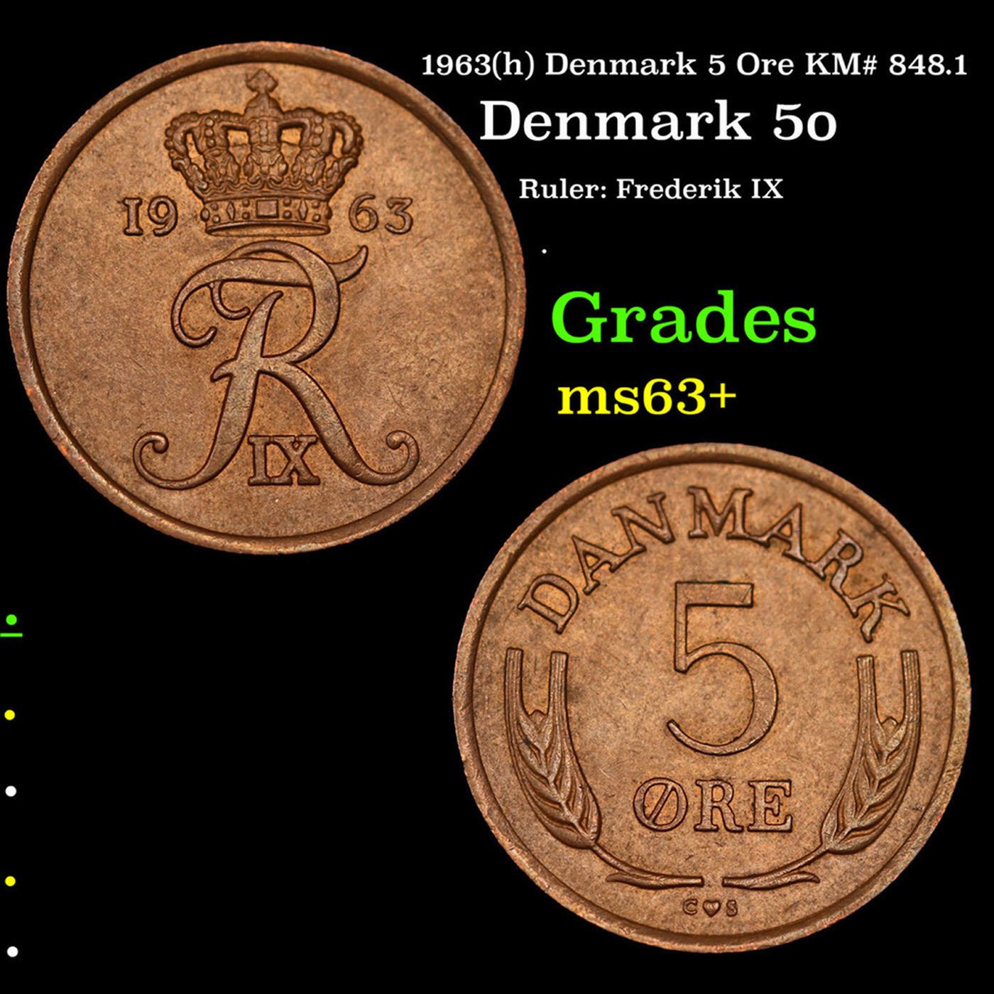 1963(h) Denmark 5 Ore KM# 848.1 Grades Select+ Unc.