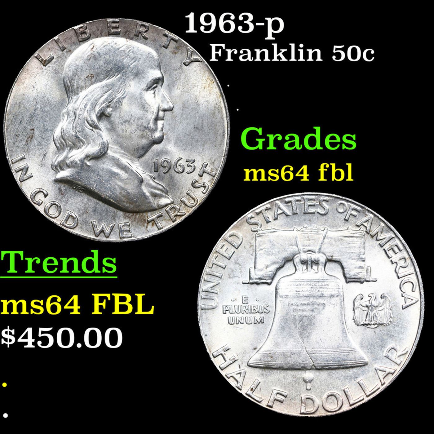 1963-p Franklin Half Dollar 50c Grades Choice Unc FBL.