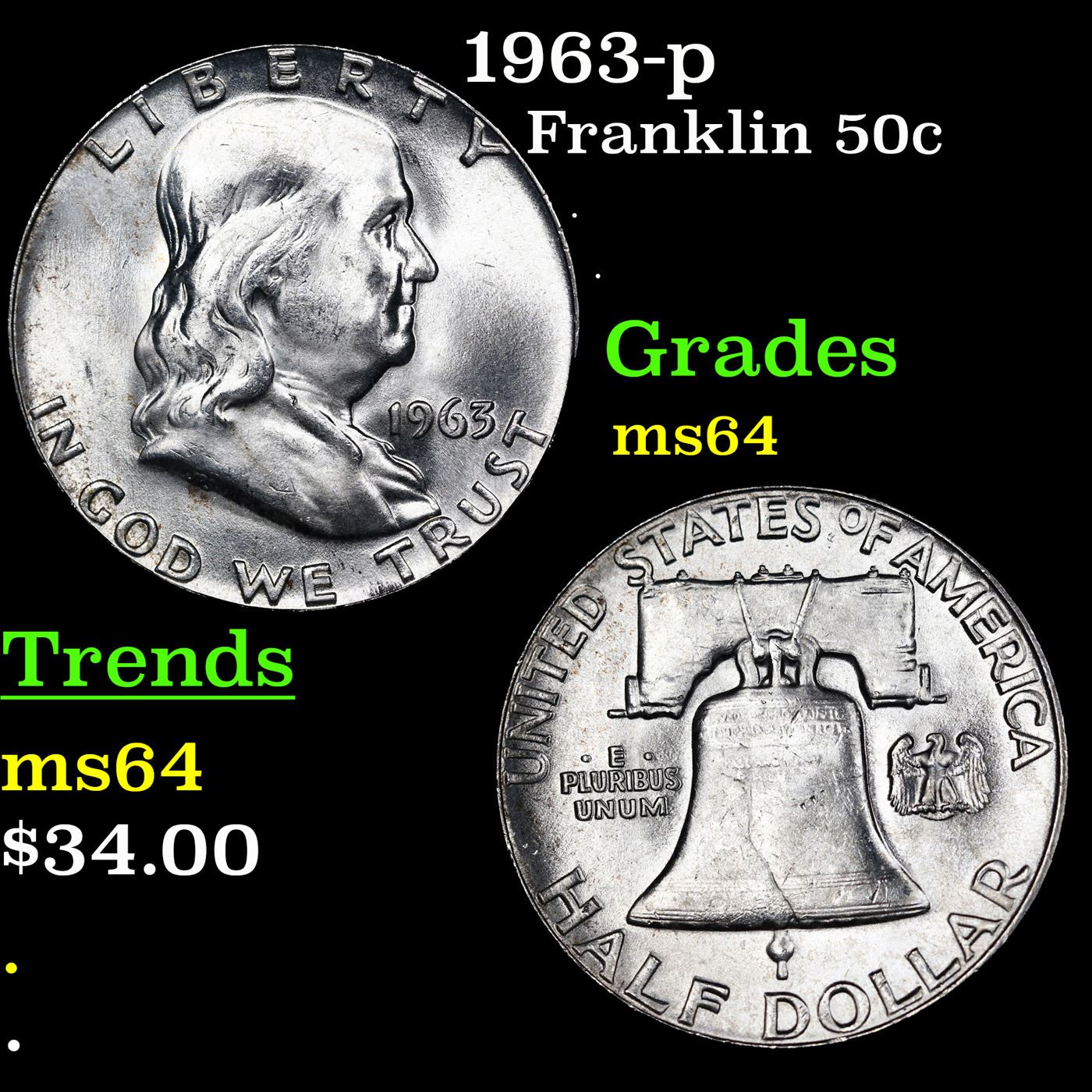 1963-p Franklin Half Dollar 50c Grades Choice Unc