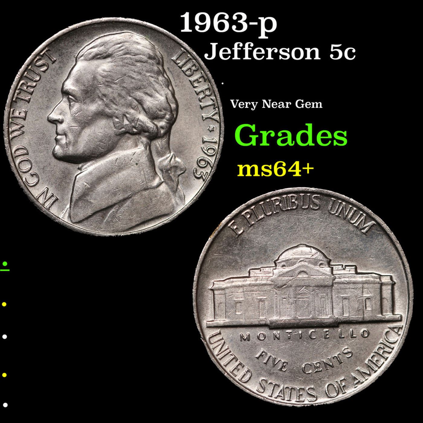 1963-p Jefferson Nickel 5c Grades Choice+ Unc.