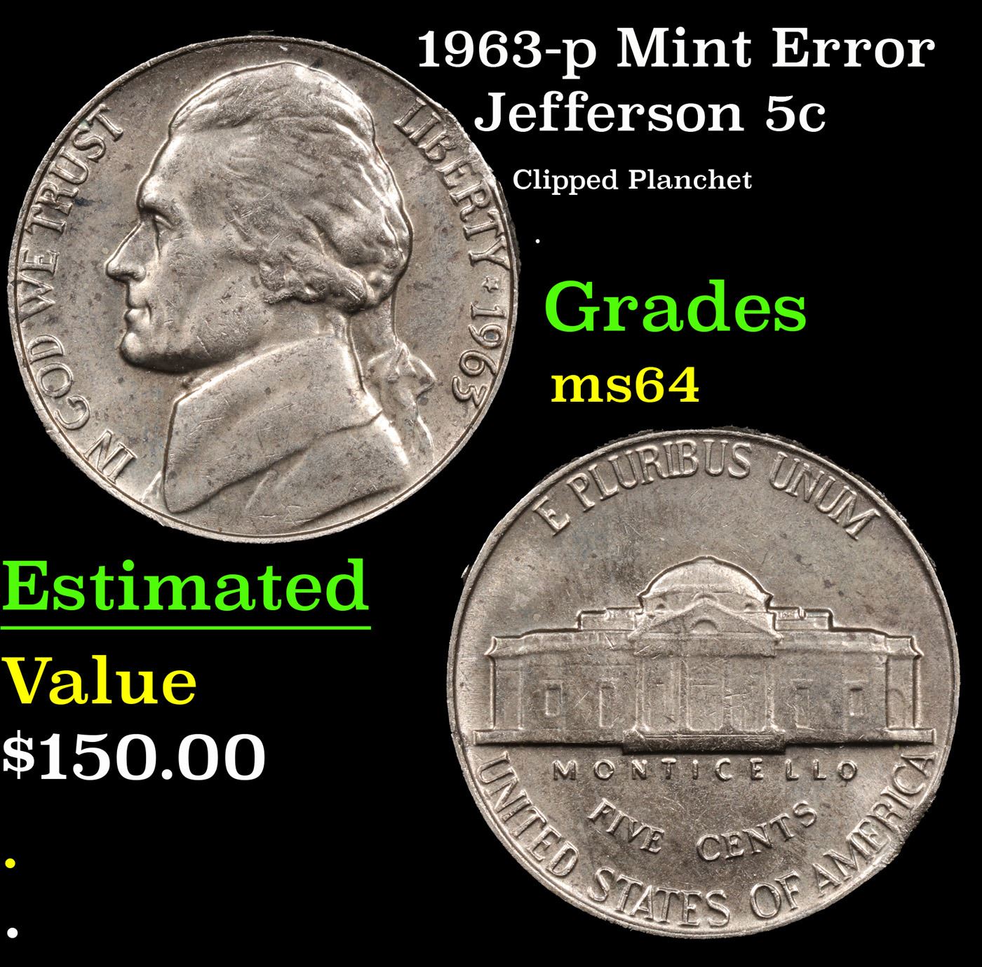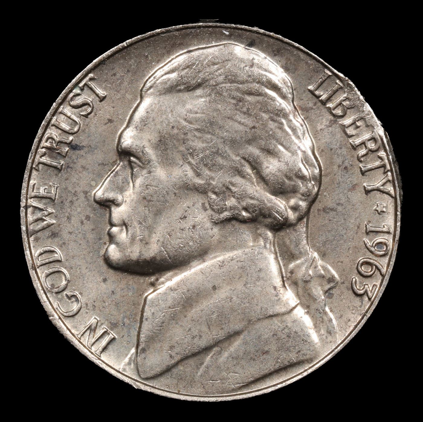 1963-p Mint Error Jefferson Nickel 5c Grades Choice Unc.