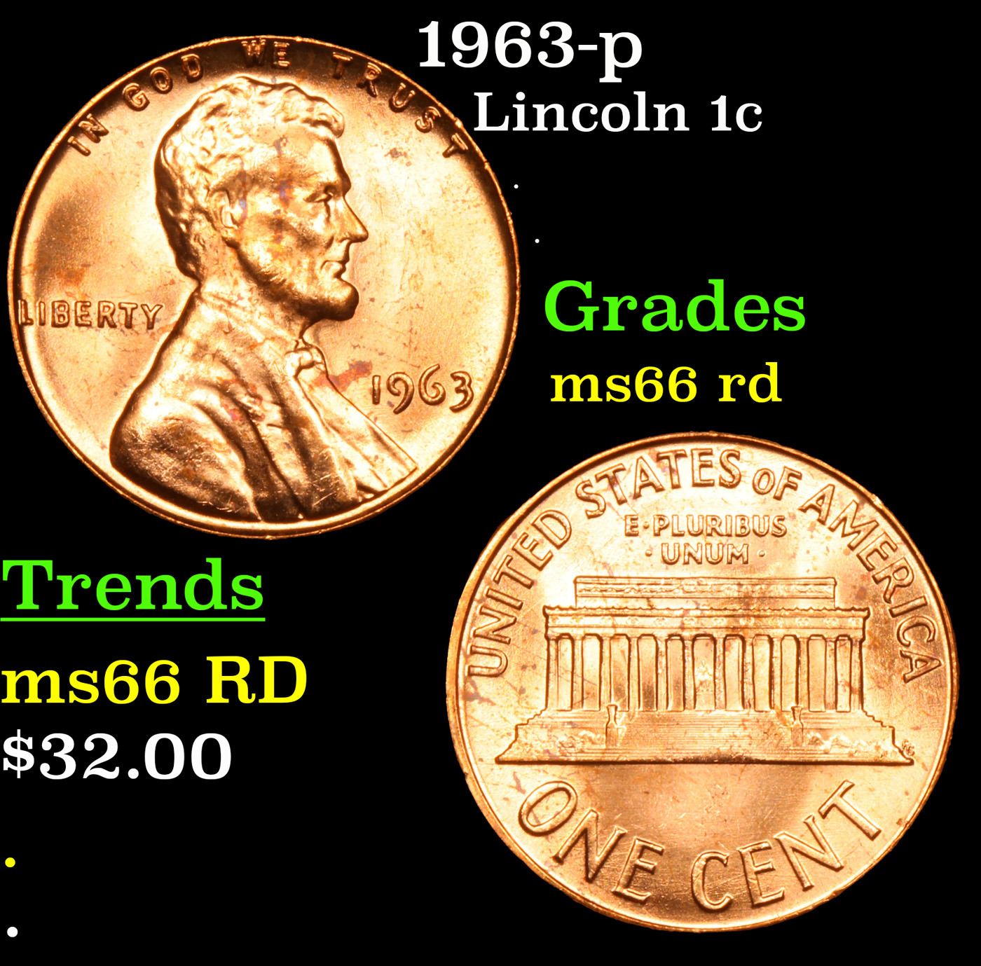 1963-p Lincoln Cent 1c Grades GEM+ Unc RD.
