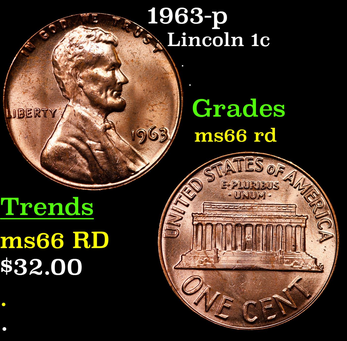 1963-p Lincoln Cent 1c Grades GEM+ Unc RD.