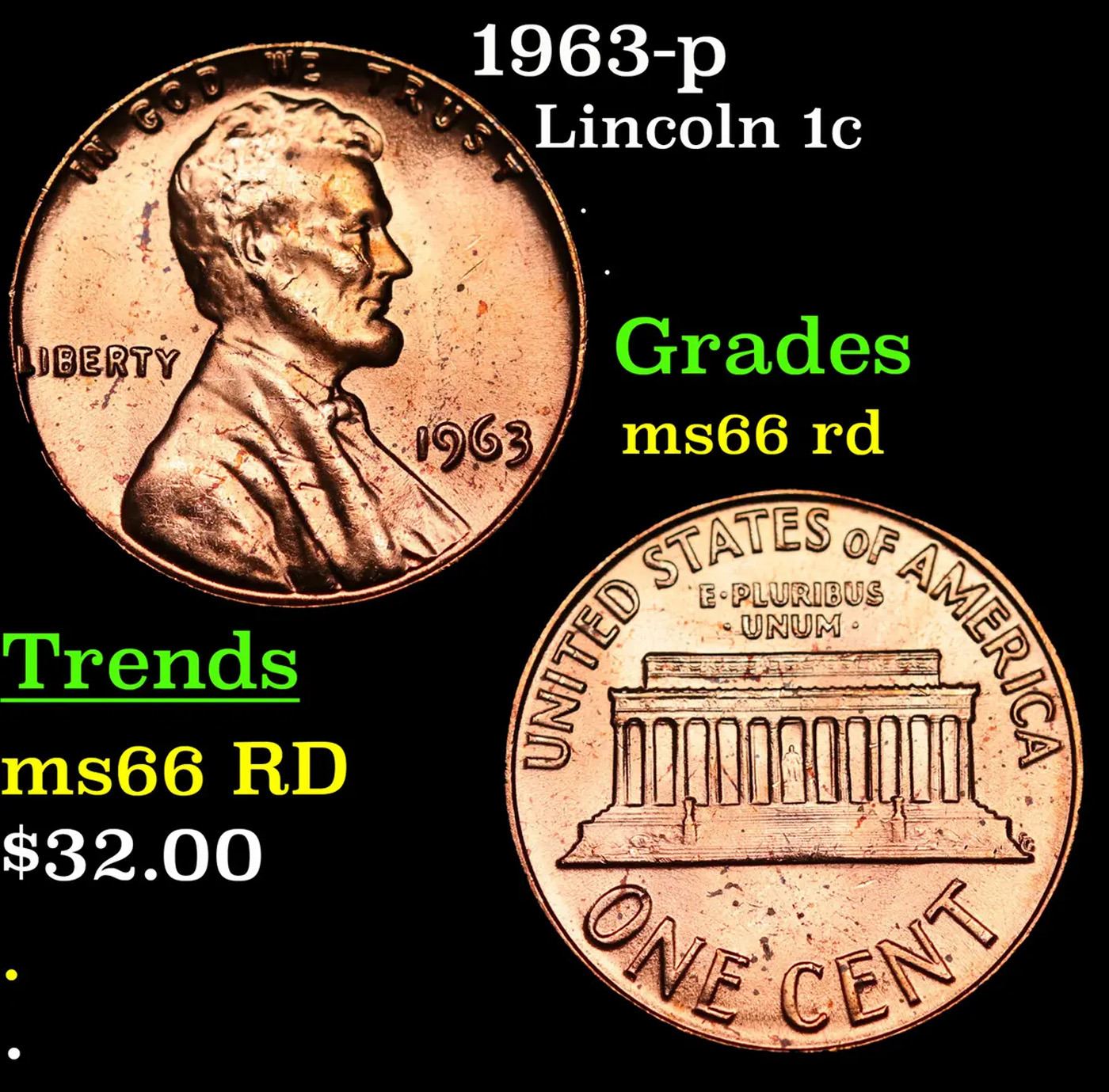 1963-p Lincoln Cent 1c Grades GEM+ Unc RD.