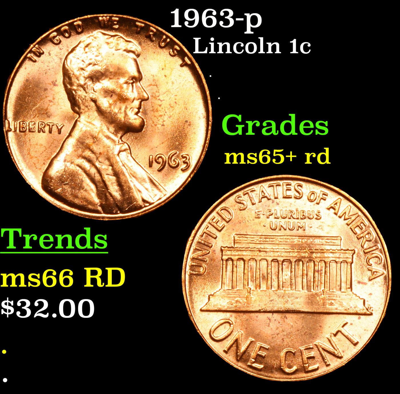 1963-p Lincoln Cent 1c Grades Gem+ Unc RD.