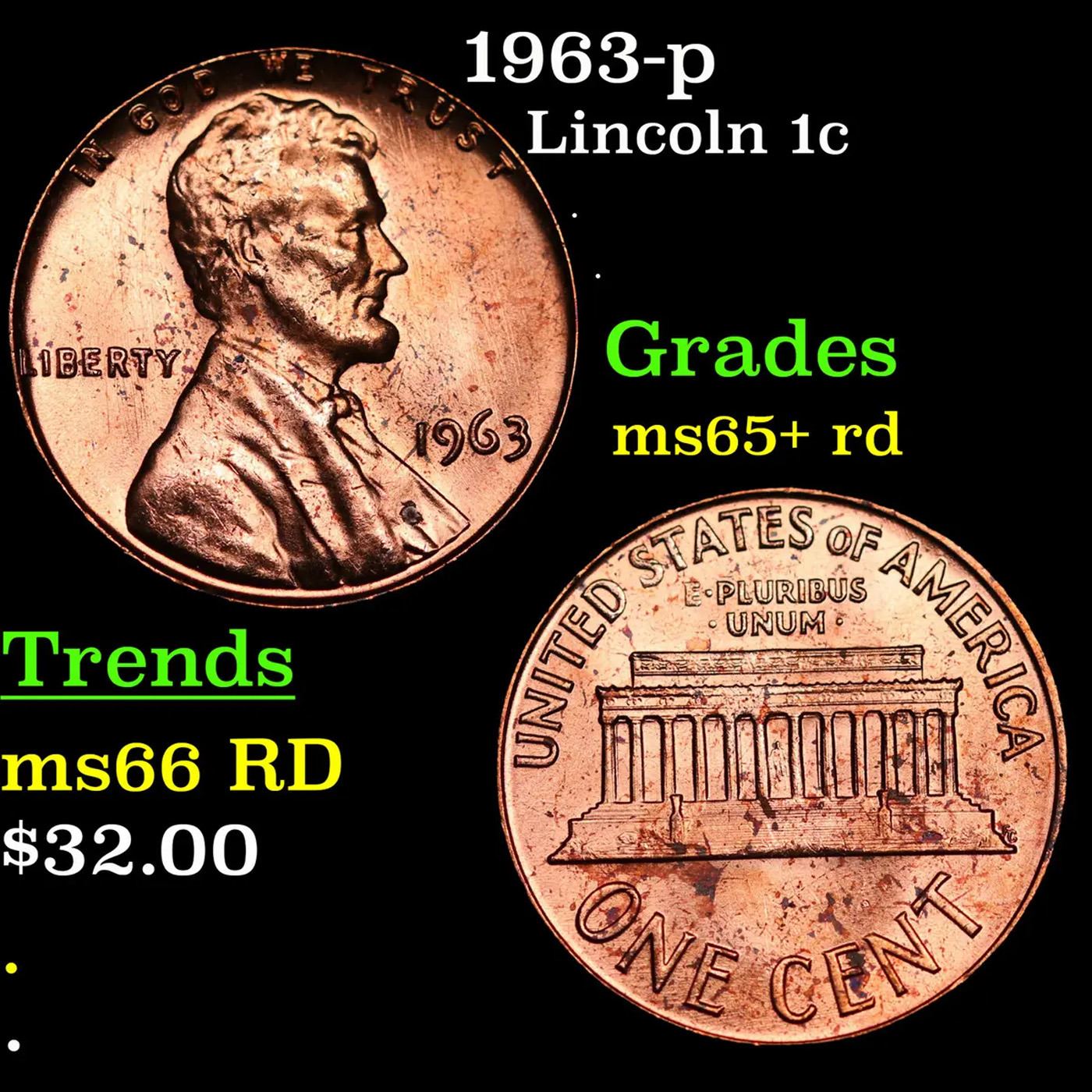 1963-p Lincoln Cent 1c Grades Gem+ Unc RD.