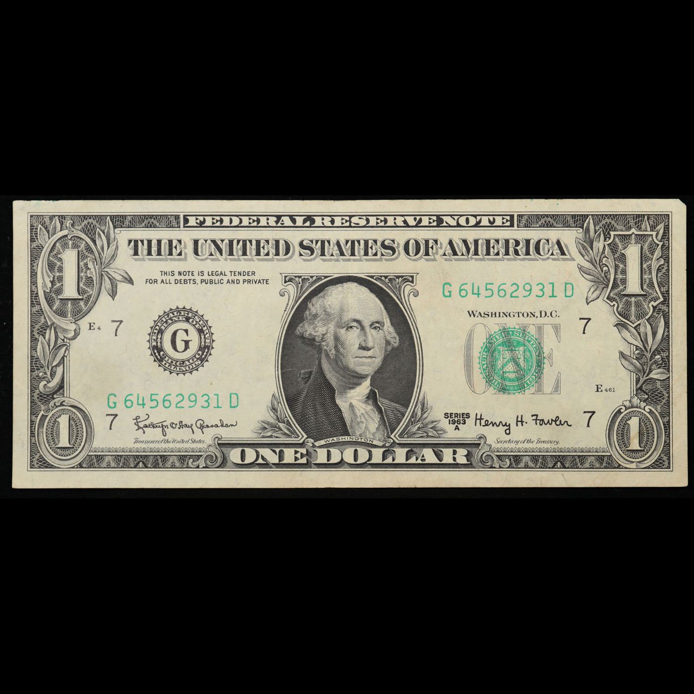 1963A $1 Green Seal Federal Reserve Note Grades Choice AU/BU Slider.