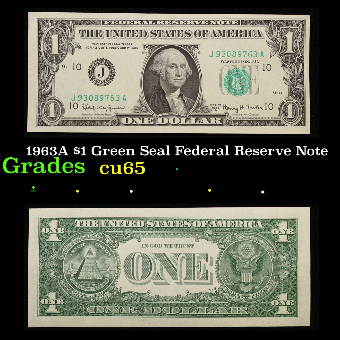 1963A $1 Green Seal Federal Reserve Note Grades Gem CU.