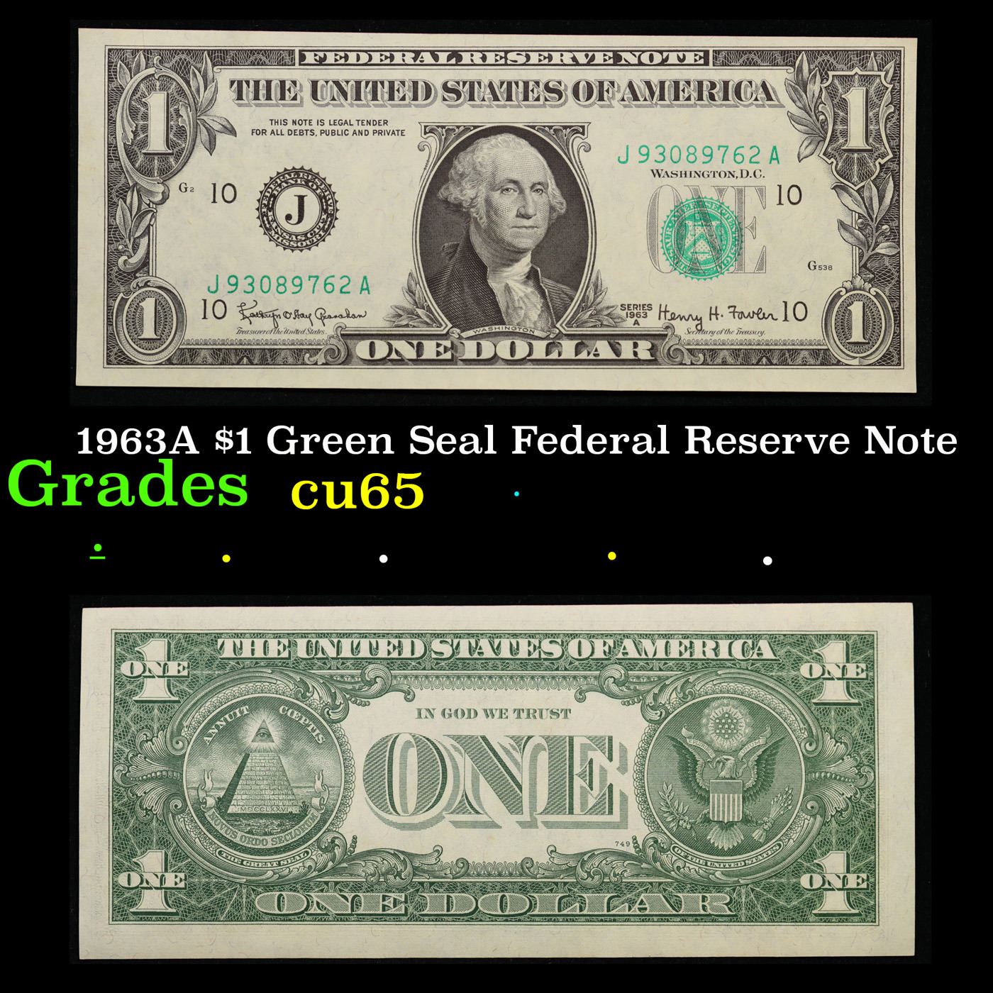 1963A $1 Green Seal Federal Reserve Note Grades Gem CU.