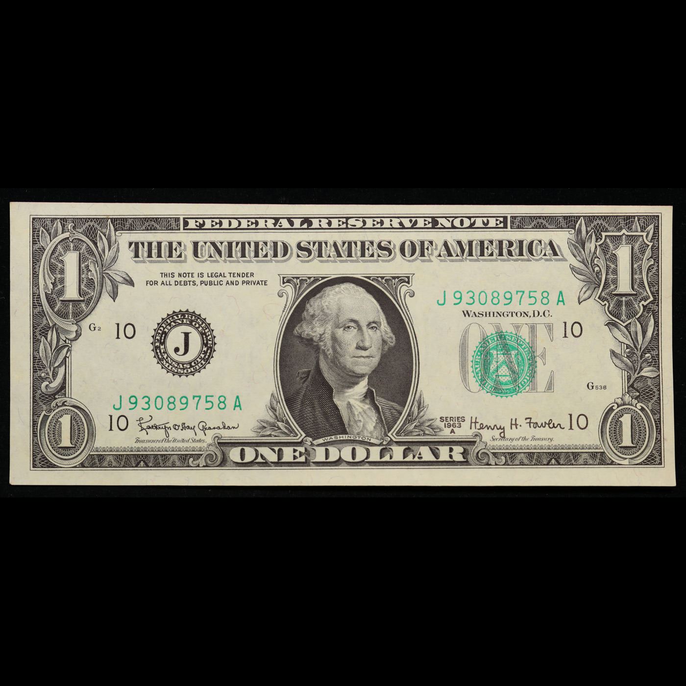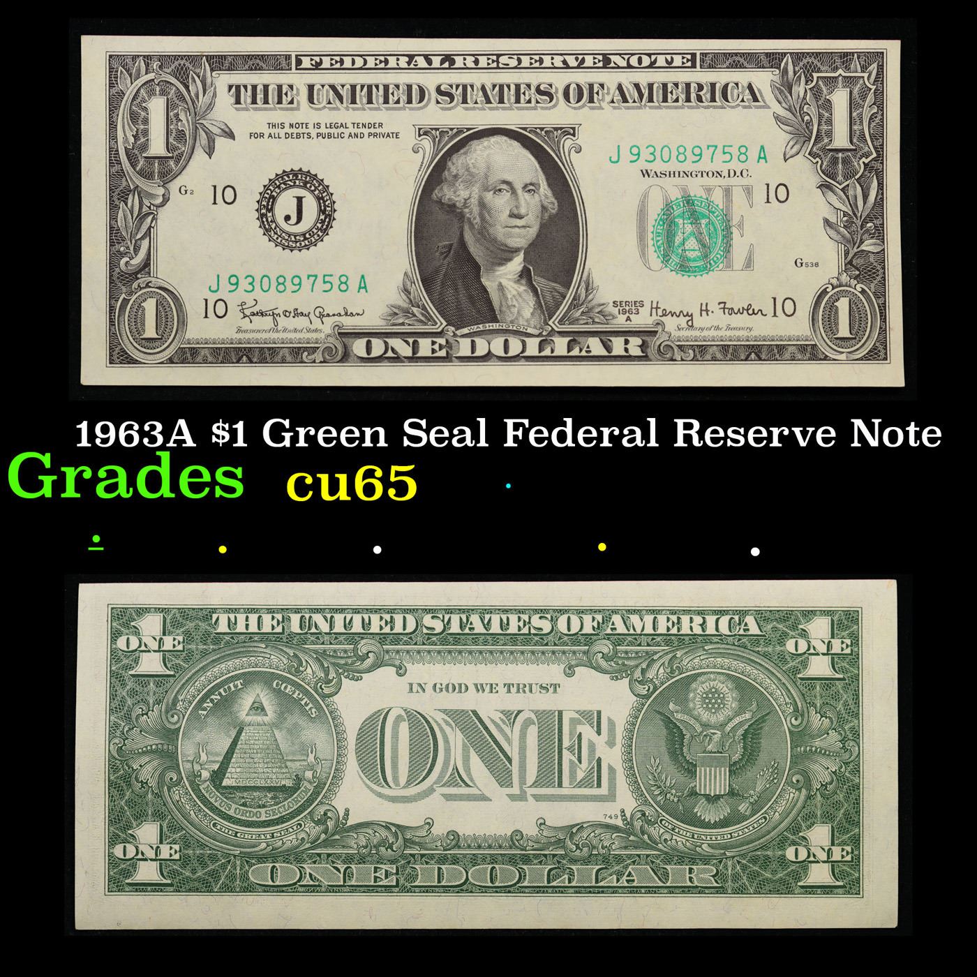1963A $1 Green Seal Federal Reserve Note Grades Gem CU.