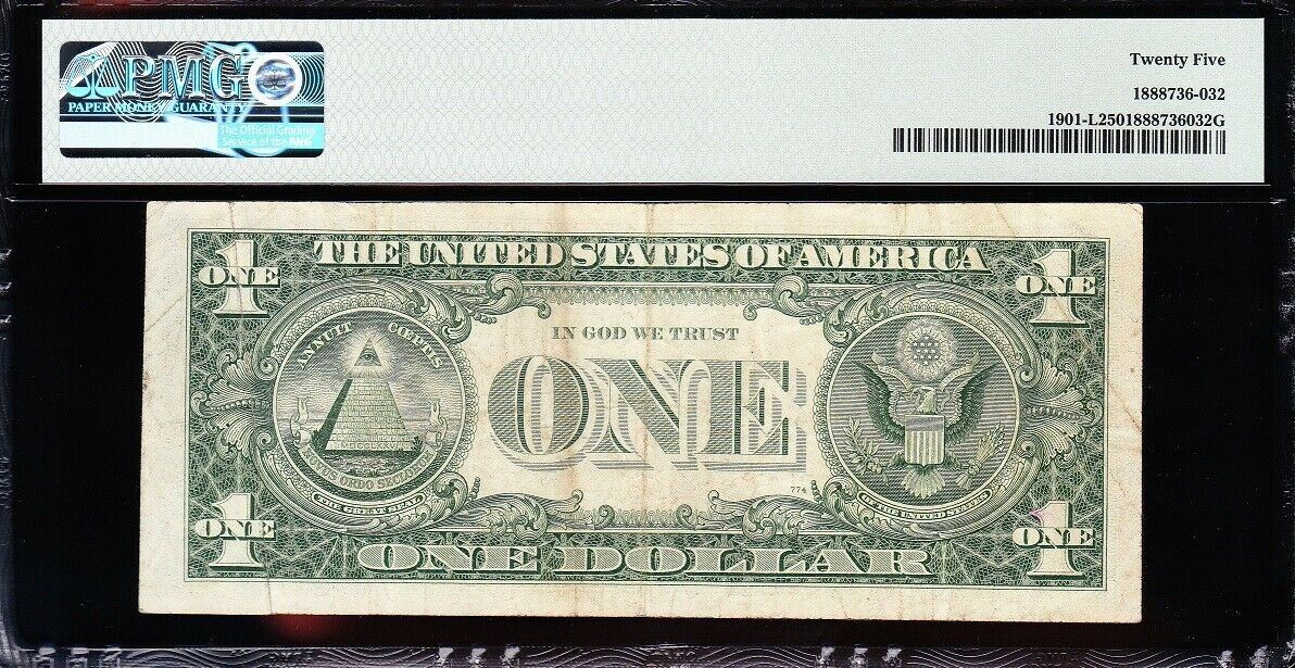 One 1963A $1 Gutter Fold Error FRN PMG 25.