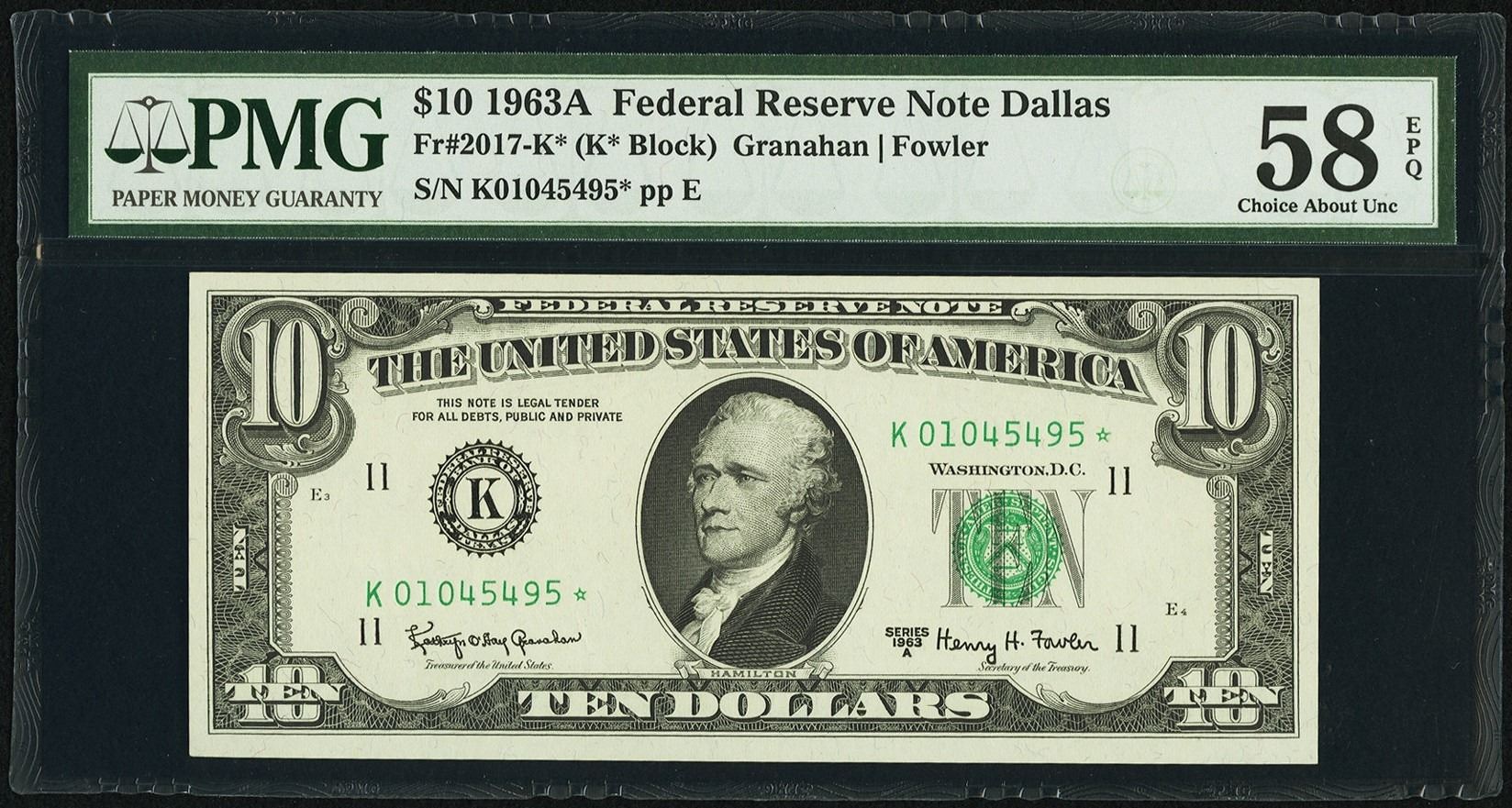 One 1963A $10 Dallas Federal Reserve STAR Note PMG 58EPQ.