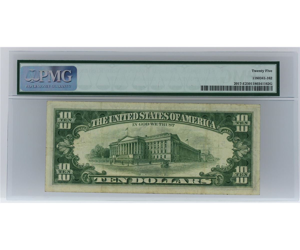One 1963A $10 Mismatched S/N Error Federal Reserve Note Richmond FR-2017-E (EA Block) PMG Graded Very Fine 25. PMG Appraised.