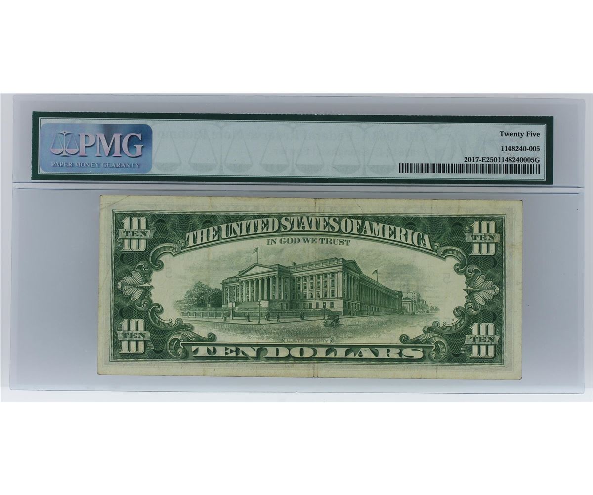 One 1963A $10 Mismatched S/N Error Federal Reserve Note Richmond FR-2017-E PMG Graded Very Fine 25. PMG Appraised.