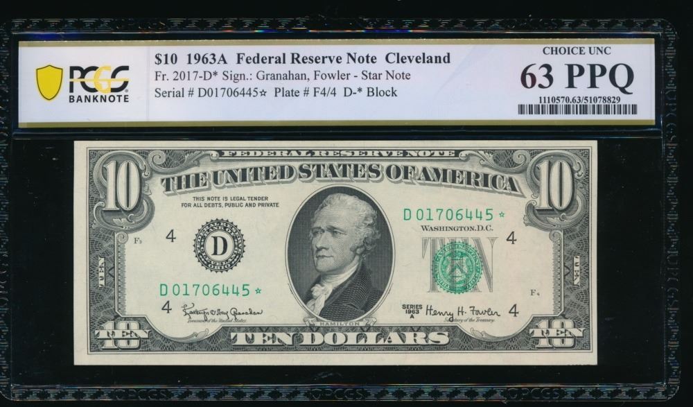 One 1963A $10 STAR Cleveland FRN PCGS 63PPQ.