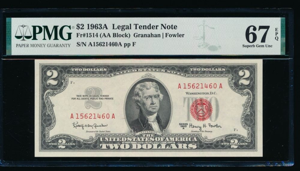 One 1963A $2 Legal Tender Note PMG 67EPQ.