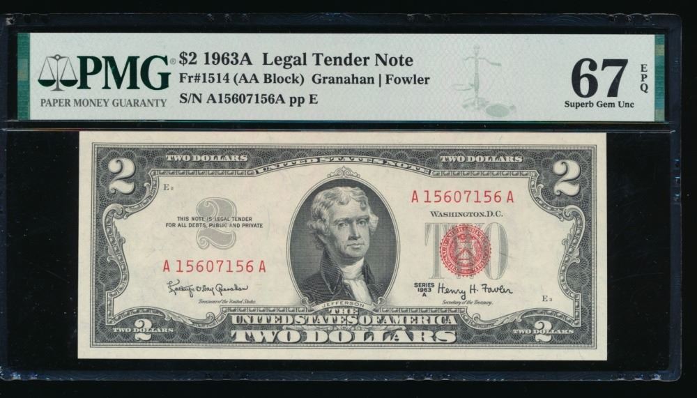 One 1963A $2 Legal Tender Note PMG 67EPQ.